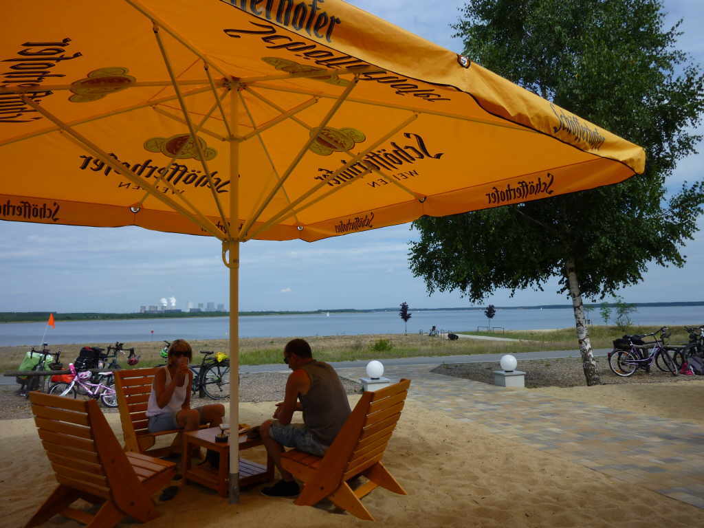 See angekommen, machen wir Mittagspause. Wir trinken einen Kaffee und essen Nudelsalat mit Bockwurst. Allerdings dauert dieses “große Menue” bis zur Fertigstellung fast 30