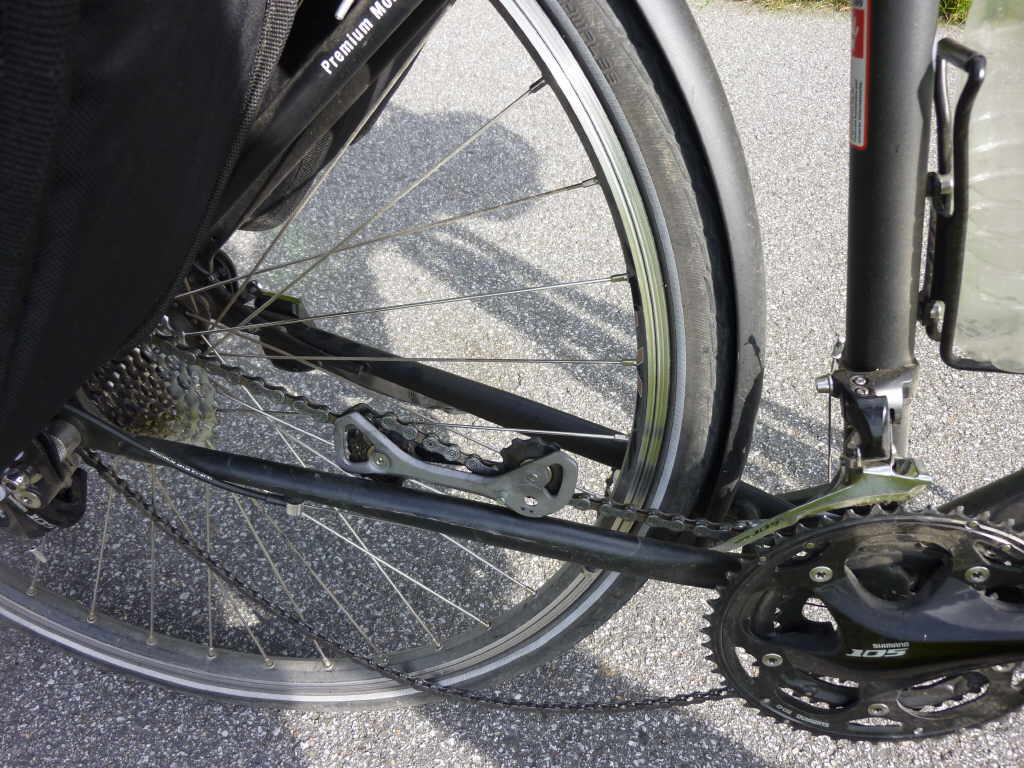 zwar in Richtung Nabe. Damit blockiert natürlich das Rad und so wie es jetzt ist, ist an weiterfahren nicht zu denken. Ich versuche mit Mühe die Kette frei zu bekommen. Es gelingt