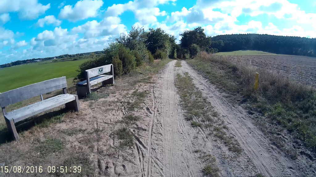 blauen Himmel entlang, nur der Wind ist ziemlich kräftig. Da der Wind aber aus Richtung WNW weht, kommen wir ganz gut voran. Ein paar Kilometer hinter Hinzdorf, an der Kreuzung an der es