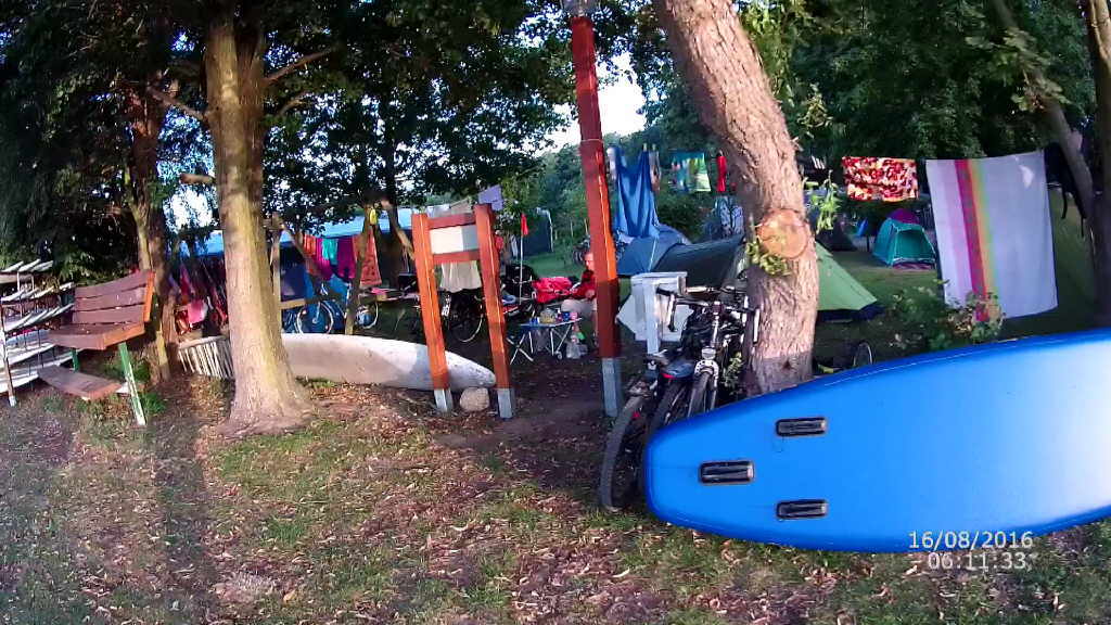 die Anmeldung öffnet. Wir bezahlen 13,- € für uns und das Zelt. Dann wird uns der Platz gezeigt und wir können uns aussuchen wo wir aufbauen wollen. Der Platz ist wunderbar und