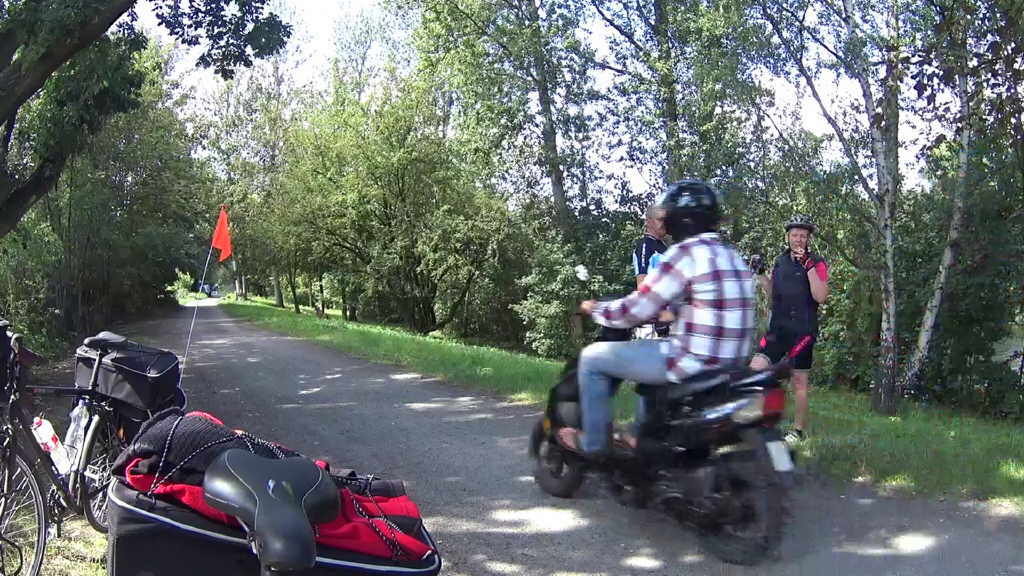 da es sich auf den bröckligen, alten Abschnitten absolut bescheiden fährt. Kurz vor Rathenow machen wir eine Rauchpause und kommen mit einem Pärchen aus Hannover ins Gespräch. Es