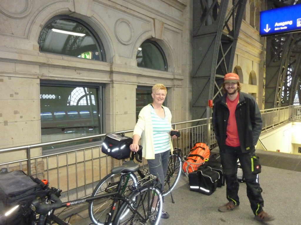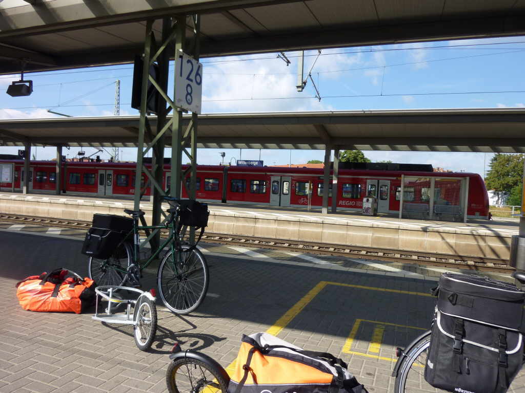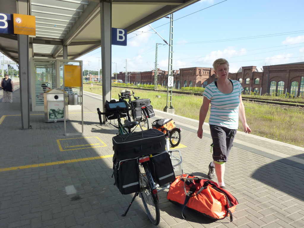 Wir stellen die Räder ab und Holger macht sich mit Mathias auf die Suche. Letztlich ist es der Bahnsteig 17. Also Gepäck und Räder die Treppen hoch buckeln und auf den Zug warten.