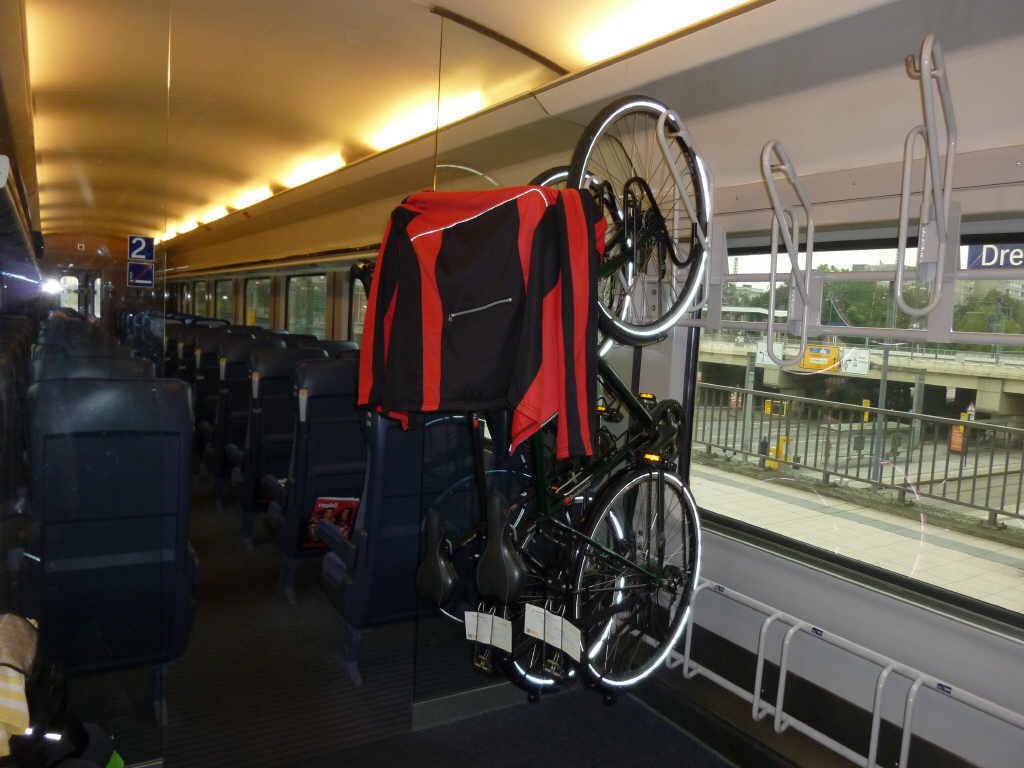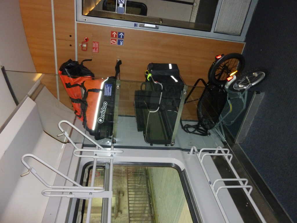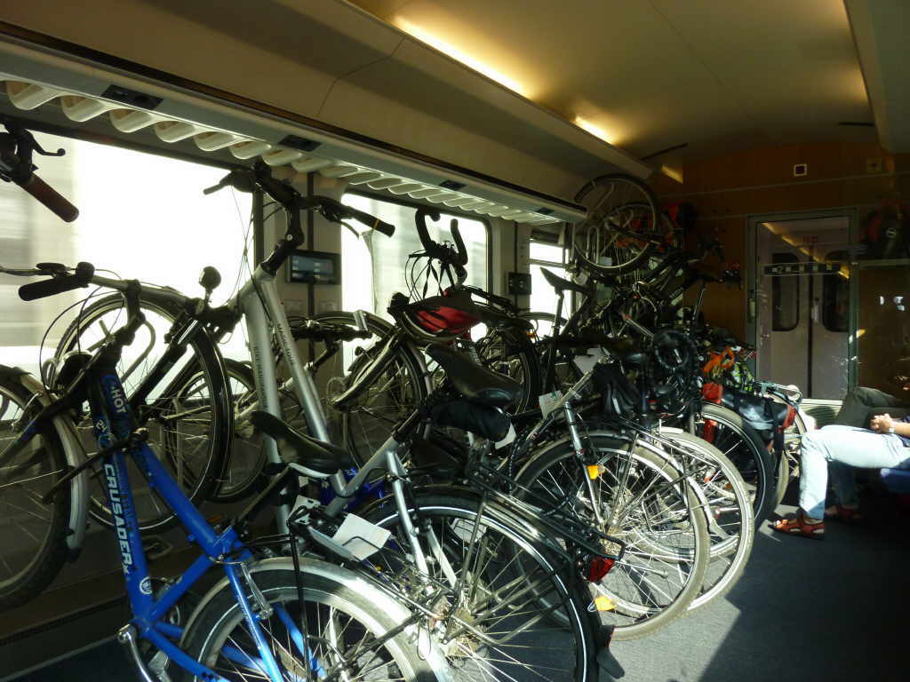 sind die einsteigen,, können wir sogar die auf den Tickets aufgedruckten Fahrradstellplätze belegen. Mathias hilft uns noch beim Einladen und dann macht er sich auf den Heimweg. Leider