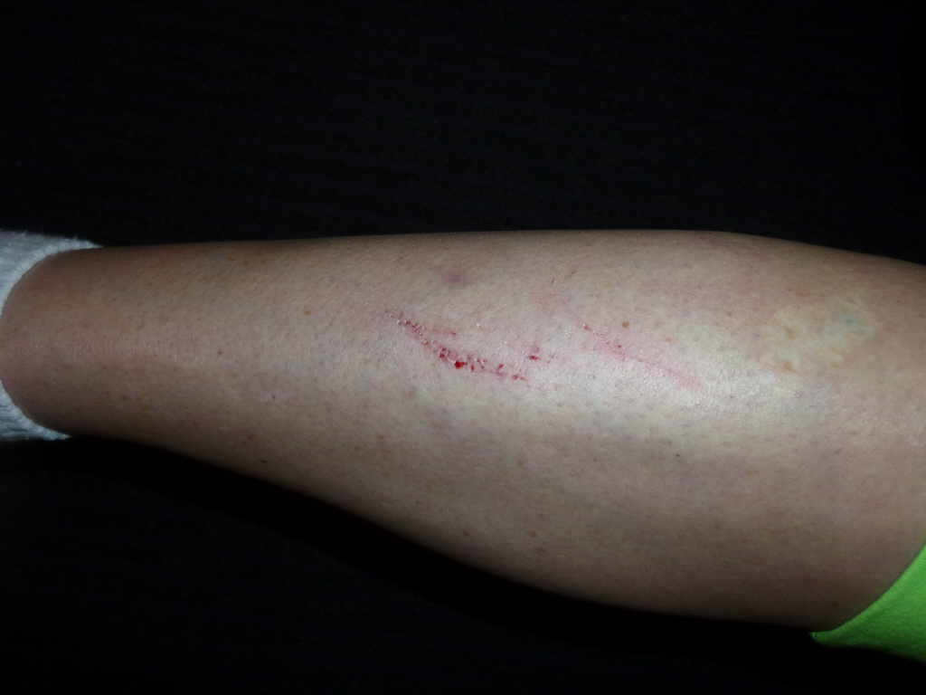 Leider hat sich Ines beim Einsteigen und Einladen das Schienbein aufgeschlagen. Ist aber nicht schlimm, sieht nur so aus. Da auf der Bahnstrecke von Dresden nach Berlin