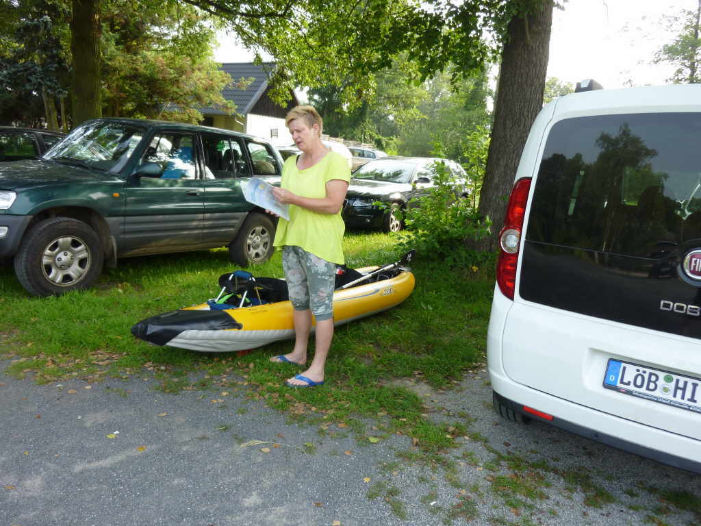 Folgende Problematik war noch zu klären. Wenn wir mit dem Auto nach Kummerow fahren und dann mit dem Boot nach Anklam paddeln, wie kommen wir dann nach Kummerow zurück,