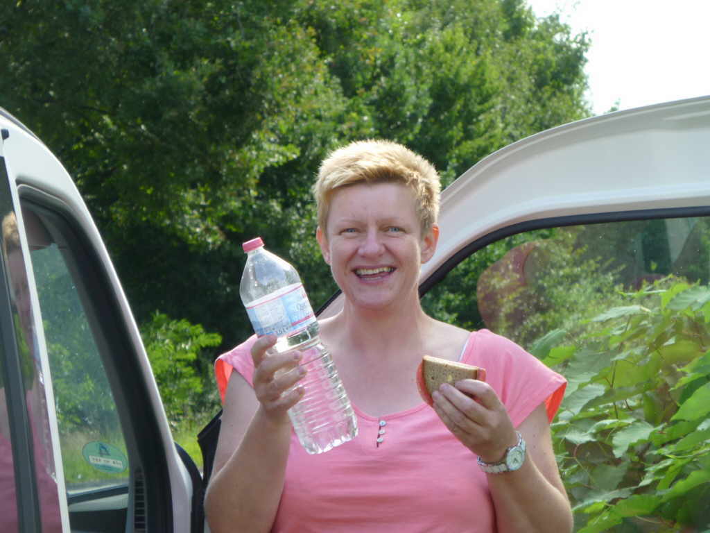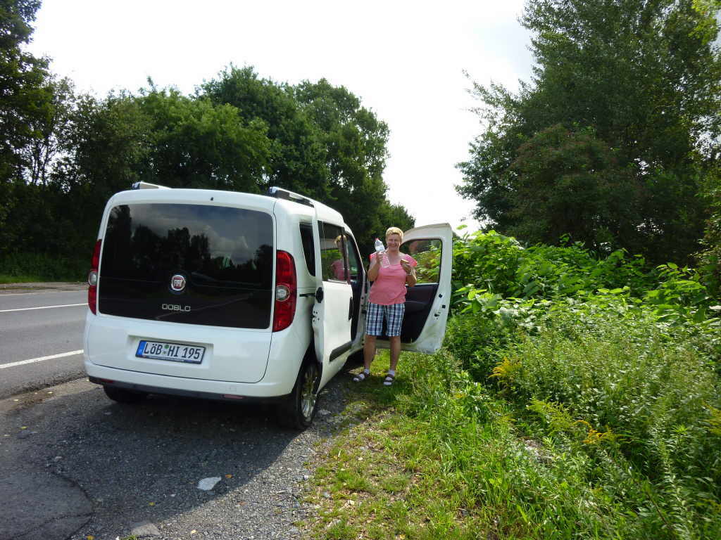 Nach ca. 70 km Fahrt fällt uns ein, dass wir die Sachen für Montagmorgen zu Hause auf dem Hackklotz haben liegen
