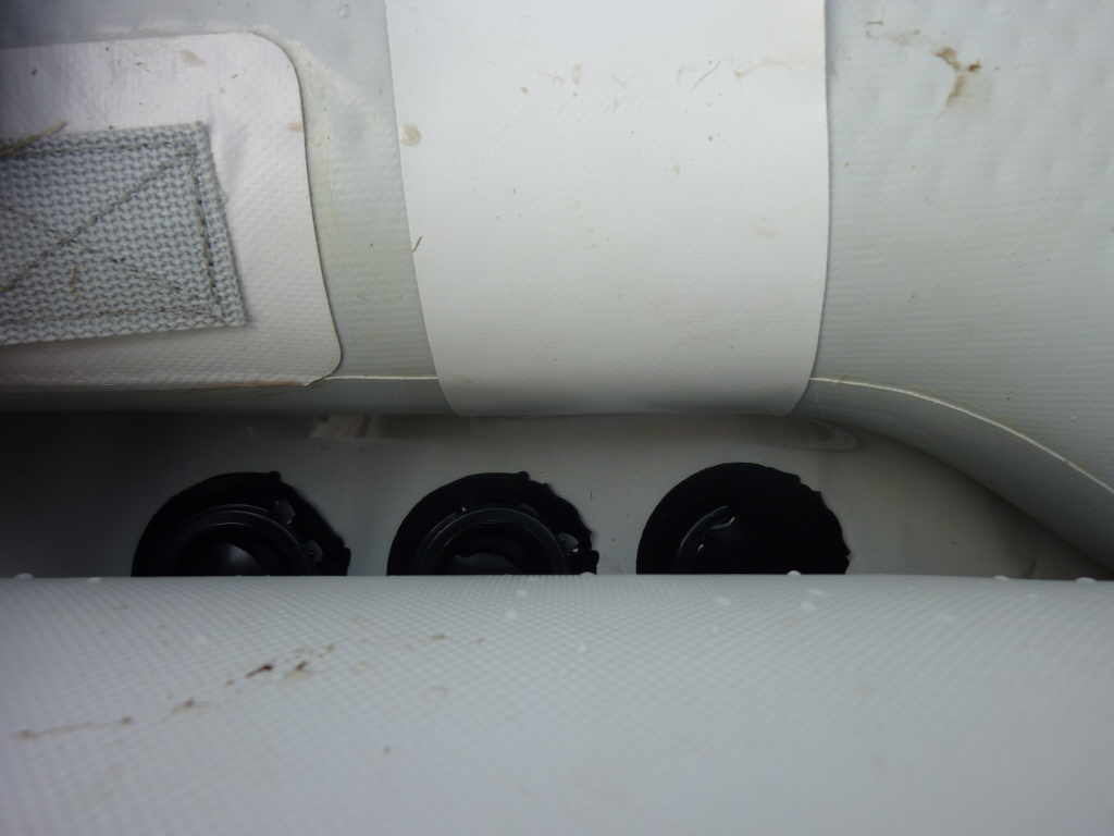 ins Boot dringt. Wir öffnen alle Lenzventile, reinigen die Anlageflächen, kippen das Wasser aus dem Boot und setzen wieder ein. Aber es dauert nicht mal 5 Minuten und wir haben wieder