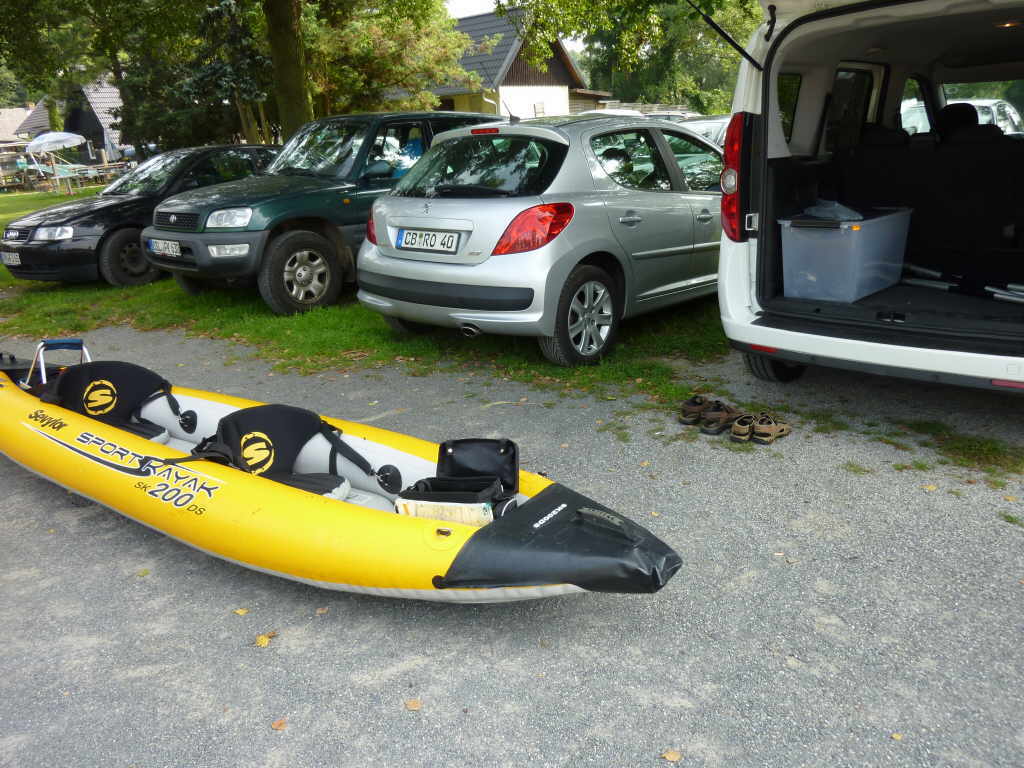 Der Fahrer ist so nett und nimmt unsere Packsäcke vom Faltboot mit zurück nach Anklam.