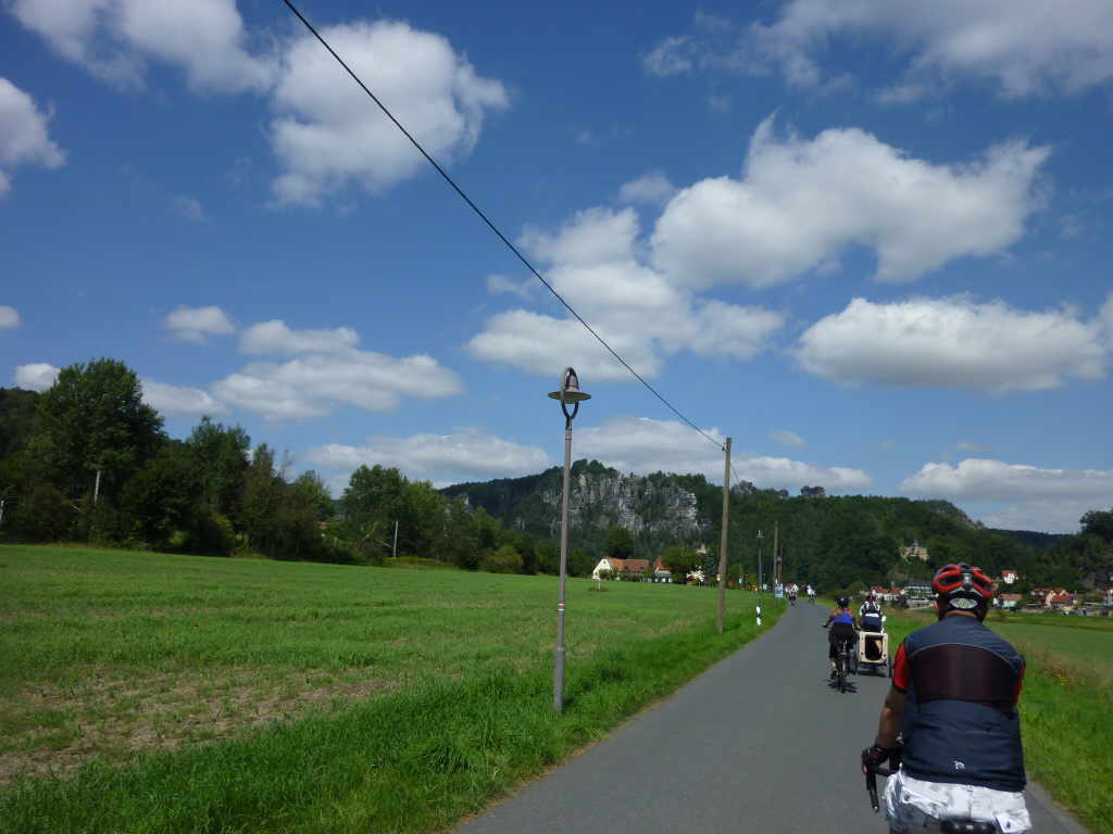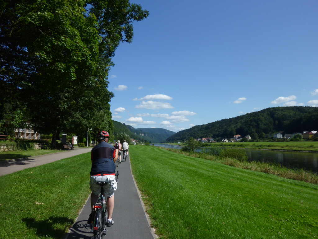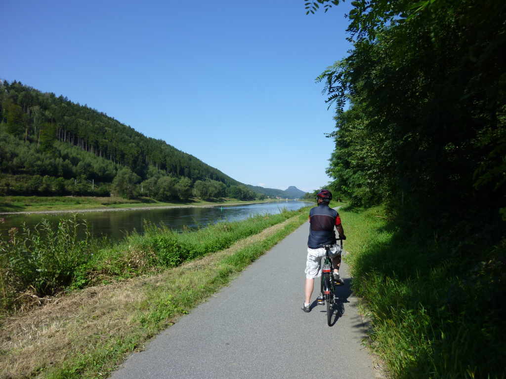 Ab Bad Schandau wird so langsam etwas mehr Betrieb. Vom Elberadweg kannten wir ja nur den Abschnitt von Wittenberge bis zur Havel. Hier im Elbsandsteingebirge ist er