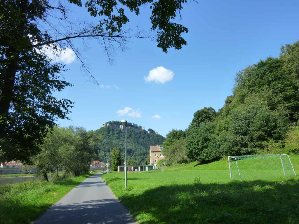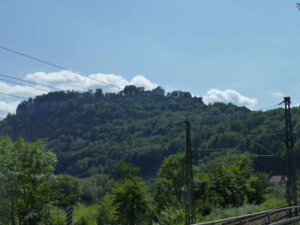 Nachdem wir an der Bastei vorbei sind, nähern wir uns langsam aber sicher Pirna. Was auch sehr störend wirkt ist der ständige Zugverkehr. Durch die landschaftlichen