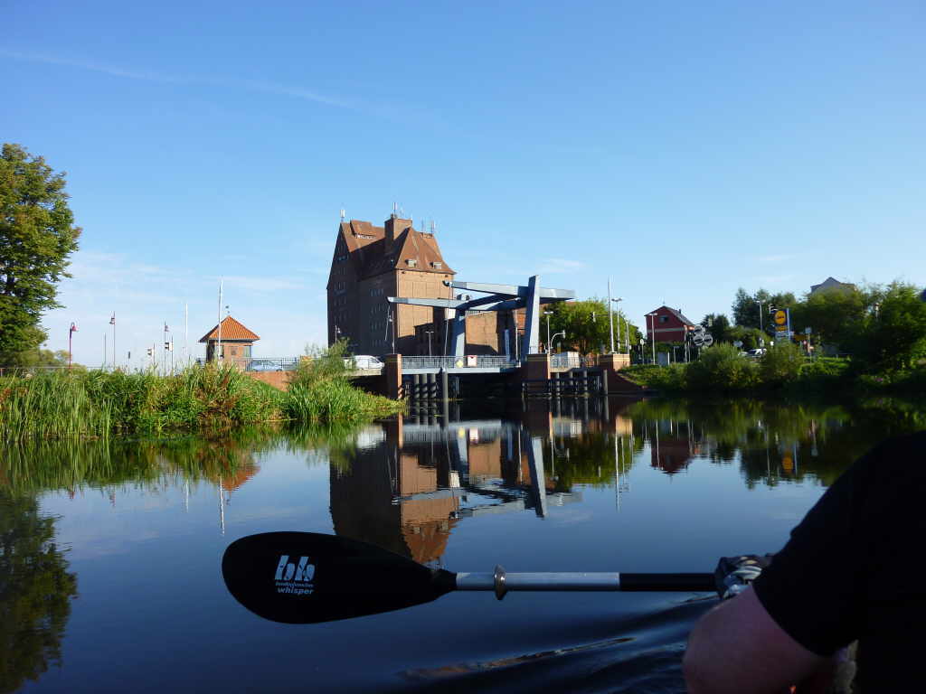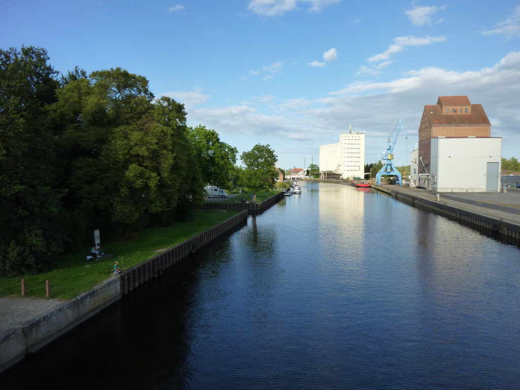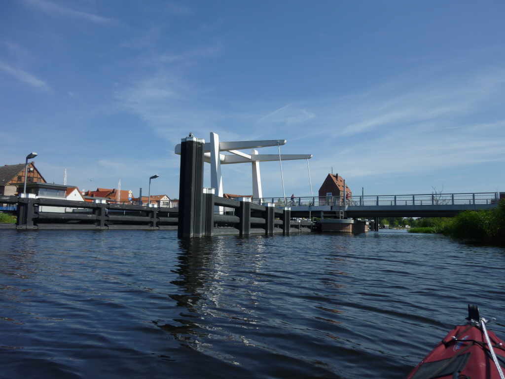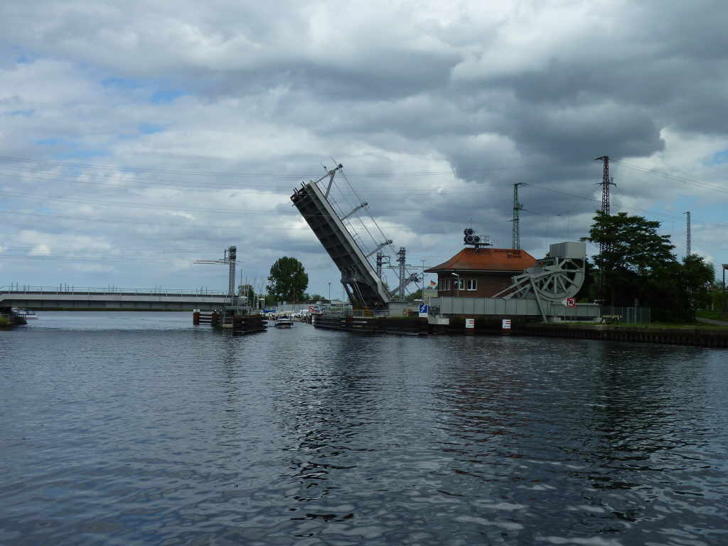 Wir genießen einfach die Ruhe. In Loitz ist die Brücke über die Peene geöffnet, wir können aber rechts vorbei fahren. Nach der Passage der Brücke legen wir links am