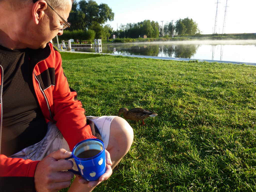 frühstücken entsteht so langsam Unruhe auf dem Platz. Die anderen Camper werden munter. Nun brauchen wir uns nicht mehr zu viel Mühe zu geben leise zu sein. Wir gehen abwaschen und