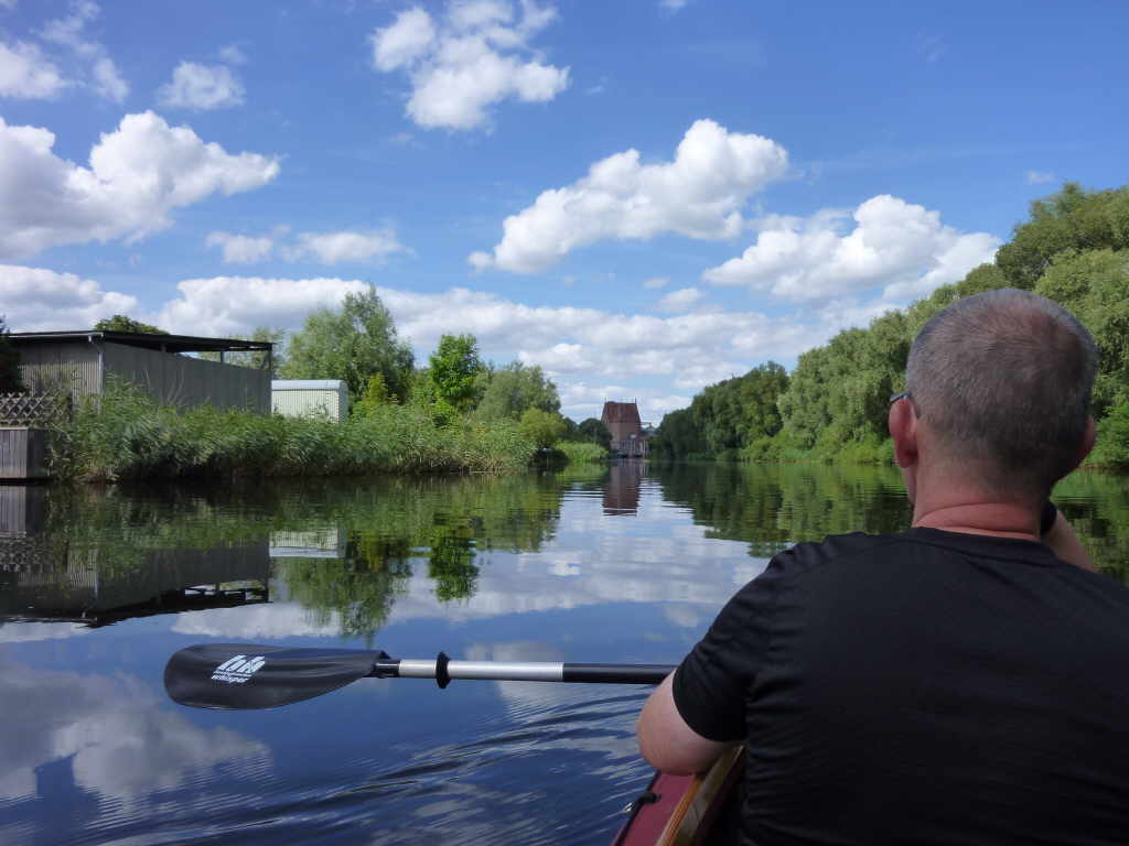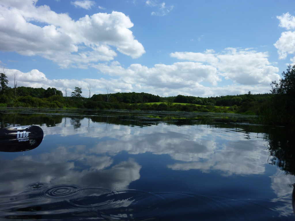Wir paddeln die ersten Meter ganz ruhig vor uns hin. Ines meldet von hinten Wassereinbruch ins Boot. Ist noch nicht aufregend, da durch die Lenzventile immer mal wieder