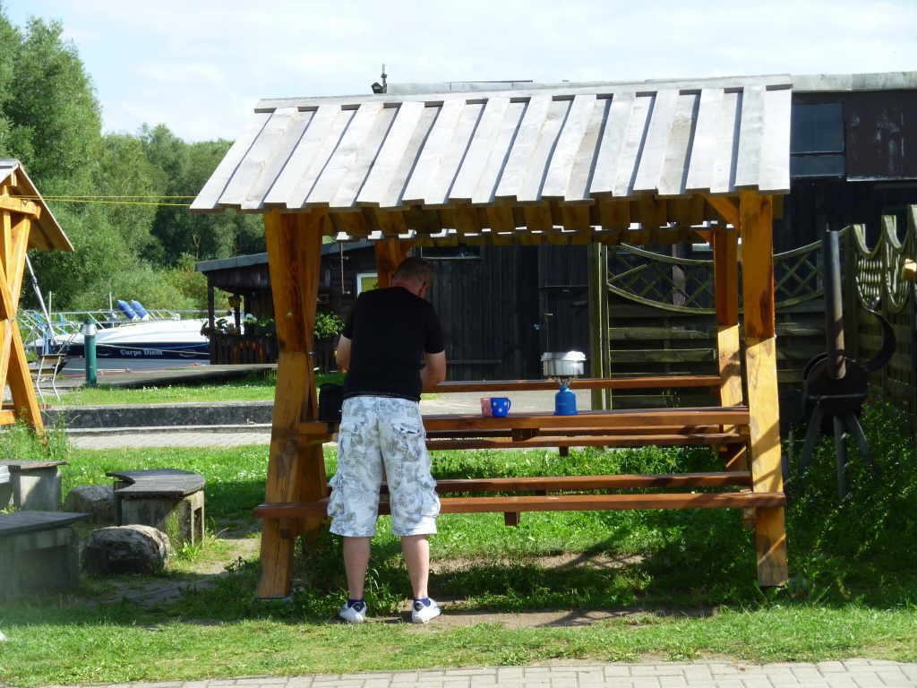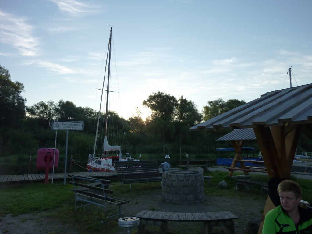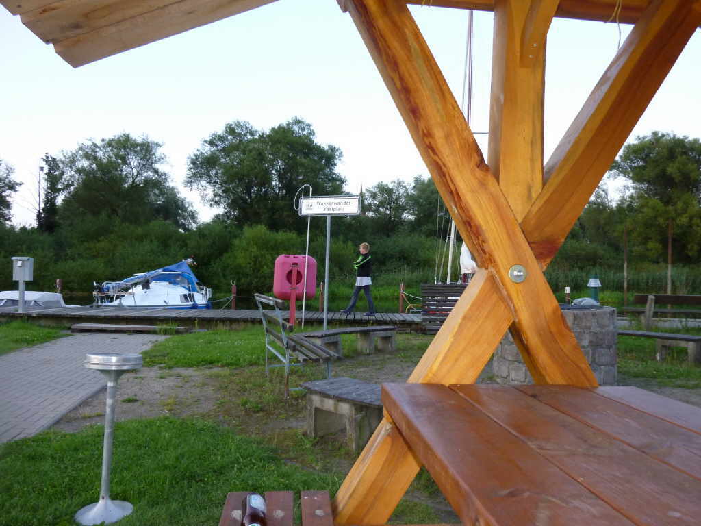 kommen auch andere Wasserwanderer an. Wir kommen mit Mike (Vater) und Lasse (Sohn) ins Gespräch. Es stellt sich heraus, die beiden kommen von Usedom aus Koserow. Mike und seine Frau