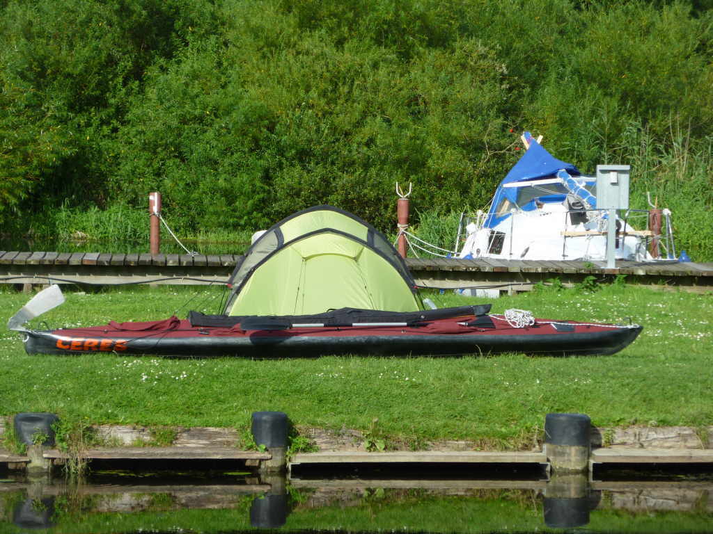beiden recht eng im Zelt zu. Gegen Abend füllt sich der Platz ganz erheblich. Zwei Hausboote legen auch noch an, wobei das eine einen Defekt hat und auf den Techniker wartet. Wir