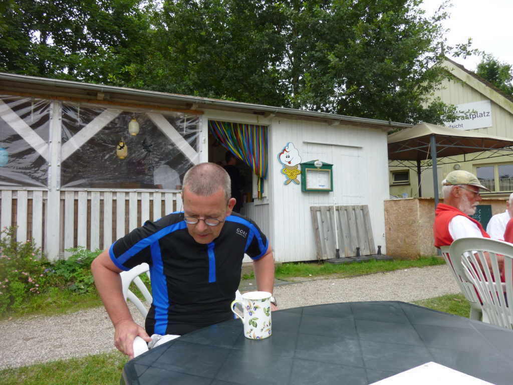 die ersten die dort ankommen. Ein kleiner aber feiner Rastplatz. Das Sanitärgebäude ist ähnlich wie in Demmin. Preise sind auch wieder sehr moderat. Wir kochen uns erst einen Kaffee