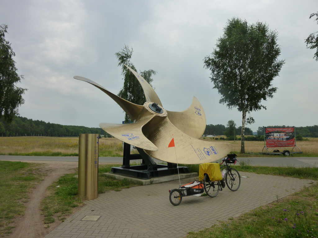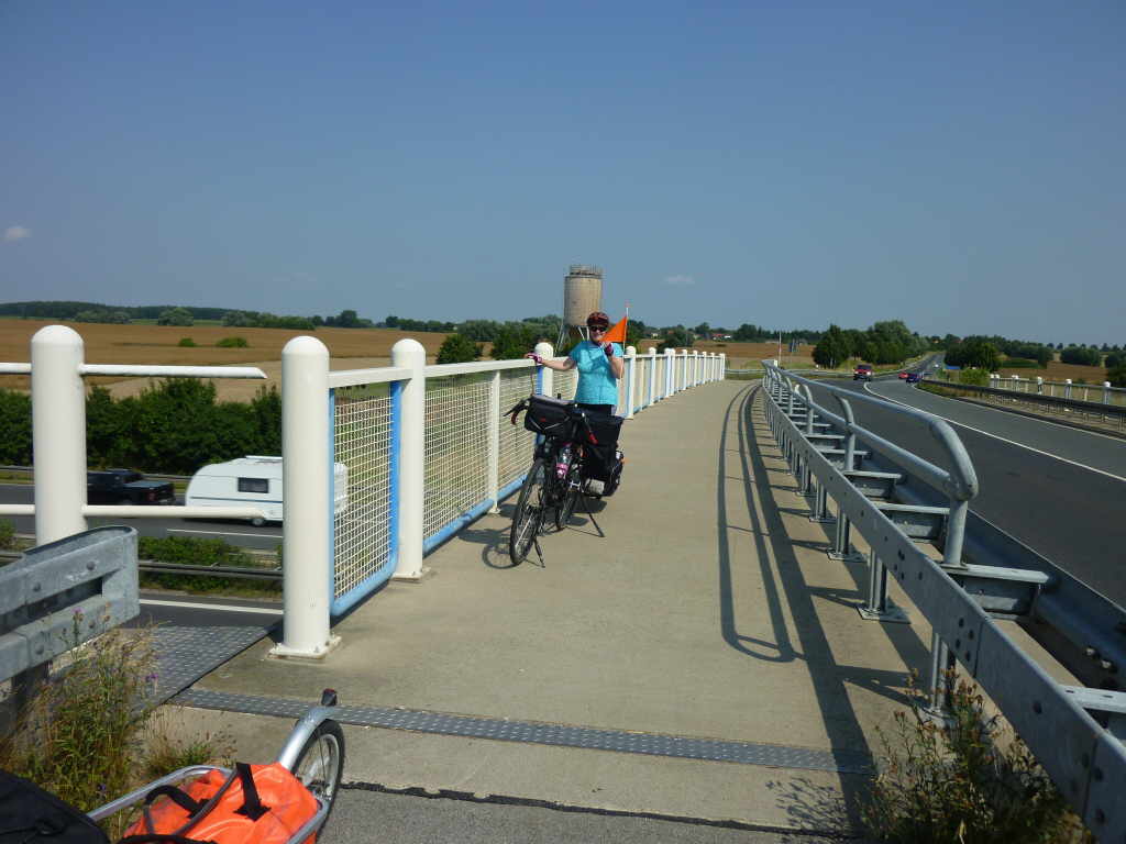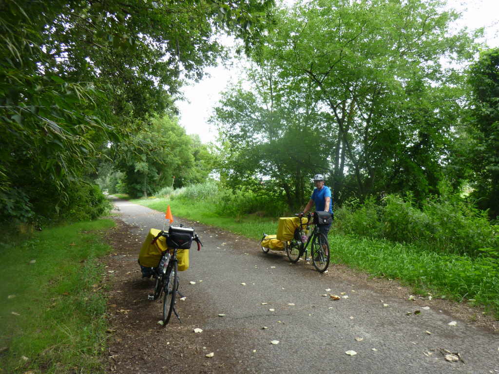 es weht kein Wind und es ist recht warm. Das macht den Umweg nicht einfacher und läßt, ob der Planung, an unserem Verstand zweifeln. Zum Glück treffen wir auch andere Radfahrer. Die