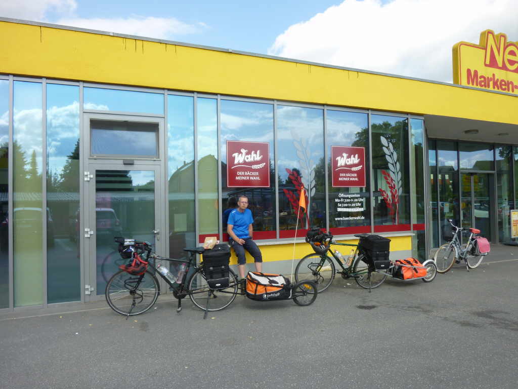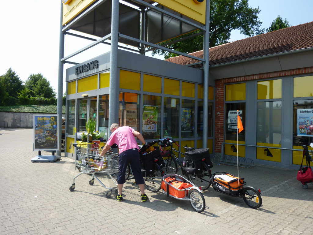im Netto einkaufen, damit wir auf dem nächsten Campingplatz etwas zum Abendbrot und Frühstück haben.