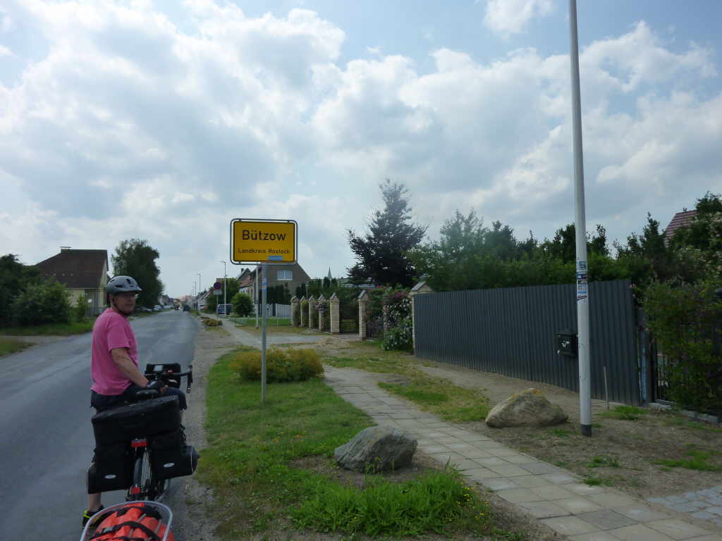 Wir kämpfen uns durch die Massen und erreichen den Bahnhofsvorplatz. Dort machen wir die Räder zurecht, starten und finden gut den Weg aus Rostock heraus in Richtung Bützow.