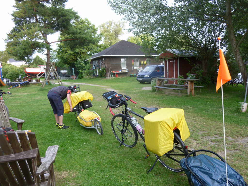Anmeldung wir erst um 16:30 Uhr besetzt.” Wir lassen uns das nicht zweimal sagen und bauen unser “Mobilheim” auf der Wiese unmittelbar an der Havel auf. Es