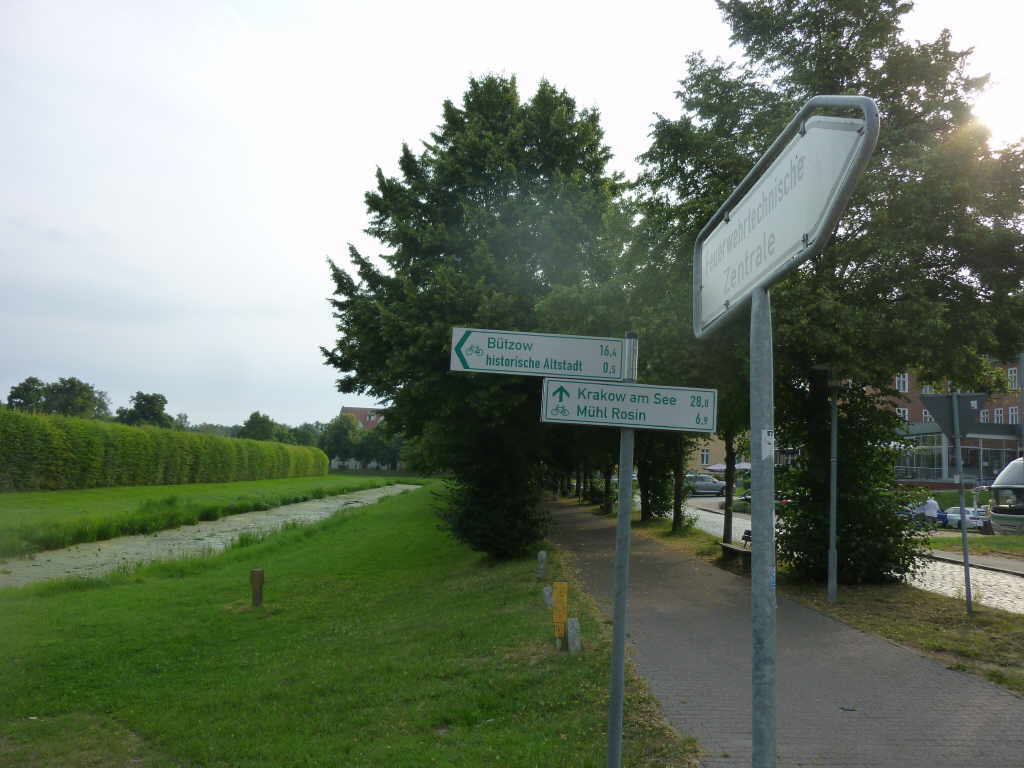 Leider läßt die Ausschilderung des Radweges in Waren sehr zu wünschen übrig. Leider hilft uns die Erinnerung an unsere Tour von 2012 nicht weiter. Es ist allerdings