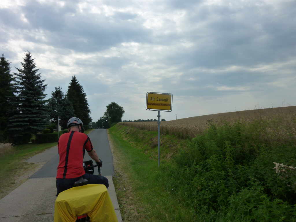 Treffen lockern die Stimmung etwas auf. Wir reden mit einer Frau, welche mit einem recht einfachen Rad gerade aus Mirow kommt. Danach treffen wir einen Holländer, welcher heute noch bis