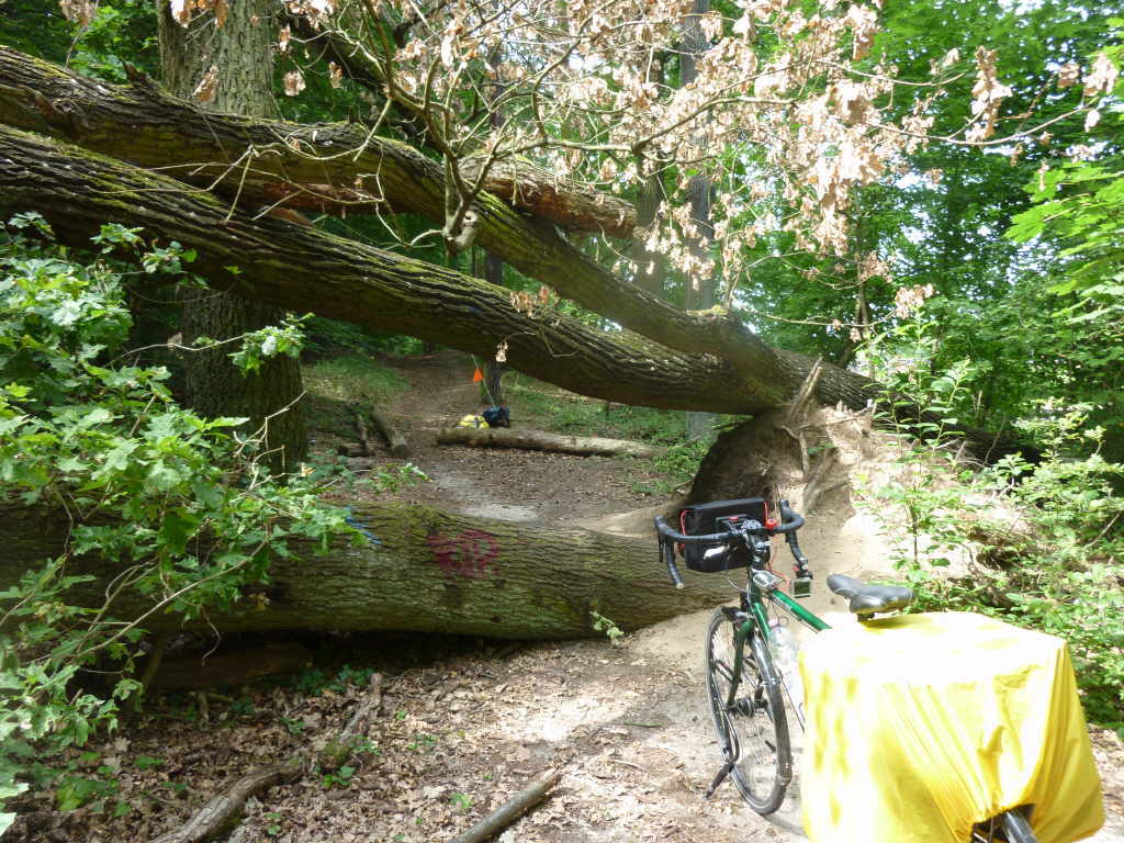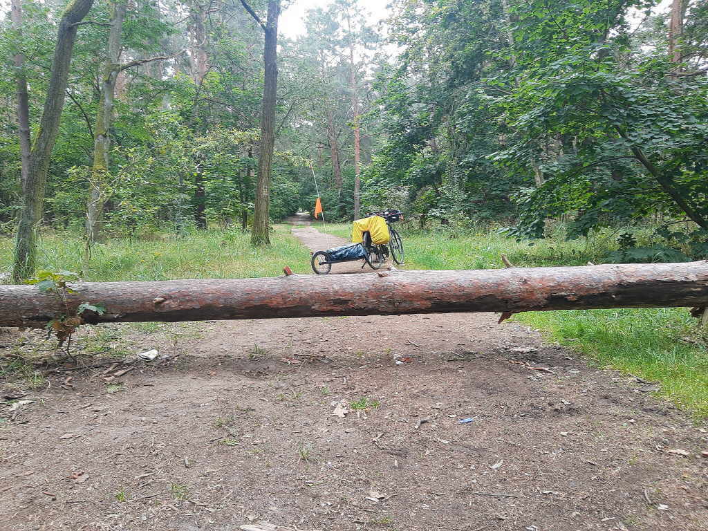 Kurz nach der Schleuse Pekamsberg bemerkt Ines wie so nebenbei, dass der Anhänger sich schwer ziehen würde. Zuerst schieben wir es auf die Sand- und Schotterwege und Holger meint er müsse