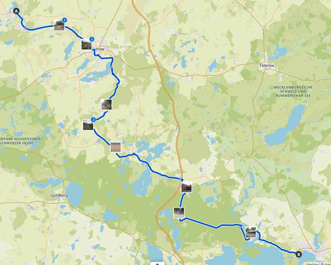 2. Etappe geplant: Bützow - Eldenburg an der Müritz 85 km gefahren: Bützow - Eldenburg an der Müritz