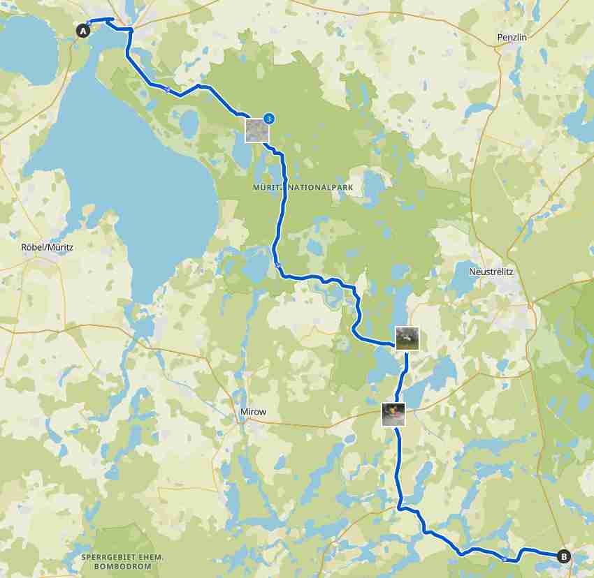 3. Etappe geplant: Eldenburg / Müritz - Röbelinsee 70 km gefahren: Eldenburg / Müritz - Zootzen 76 km