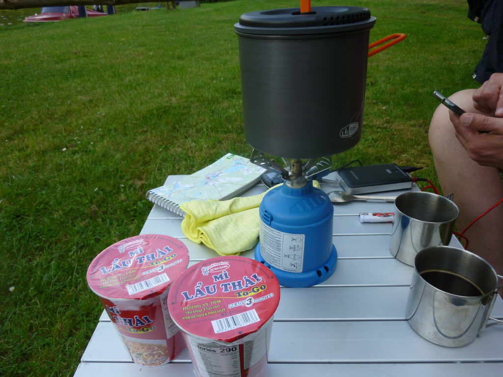 sonderlich überrascht, das der Wasserwander-Rastplatz sehr gut gebicht war. Wir wurden sehr freundlich empfangen und tranken erstmal einen kräftigen Kaffee. Während wir Kaffee trinken,