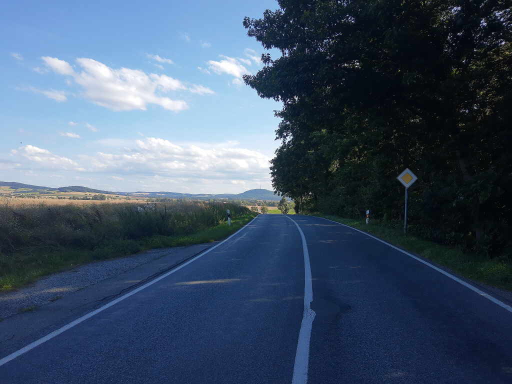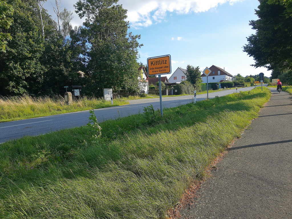 Wir fahren weiter um den Bärwalder See. Plötzlich taucht ein Hinweisschild auf. Darauf ein Radfahrr und die Entfernungsangabe: Löbau 39 km. Also los. Die paar Kilometer