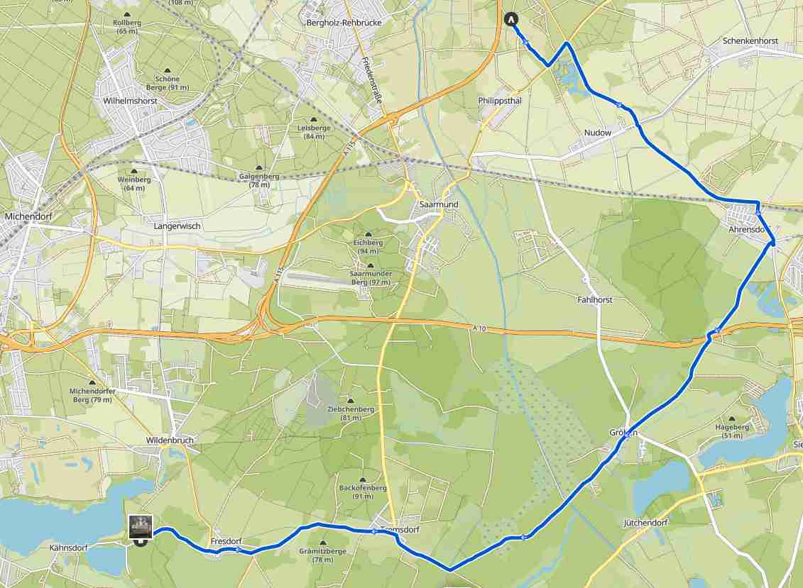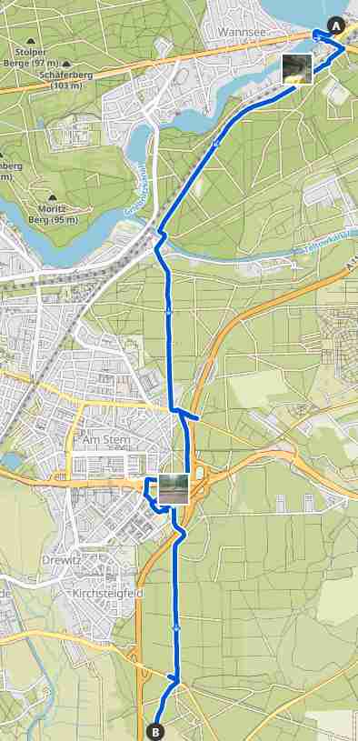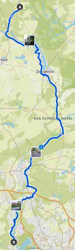 starten. Von dort aus entlang des umgekehrten Berlin - Kopenhagen-Radweges nach Berlin Spandau auf den Zeltplatz an der Bürgerablage. Weiter dann Richtung Süden durch Berlin, über den
