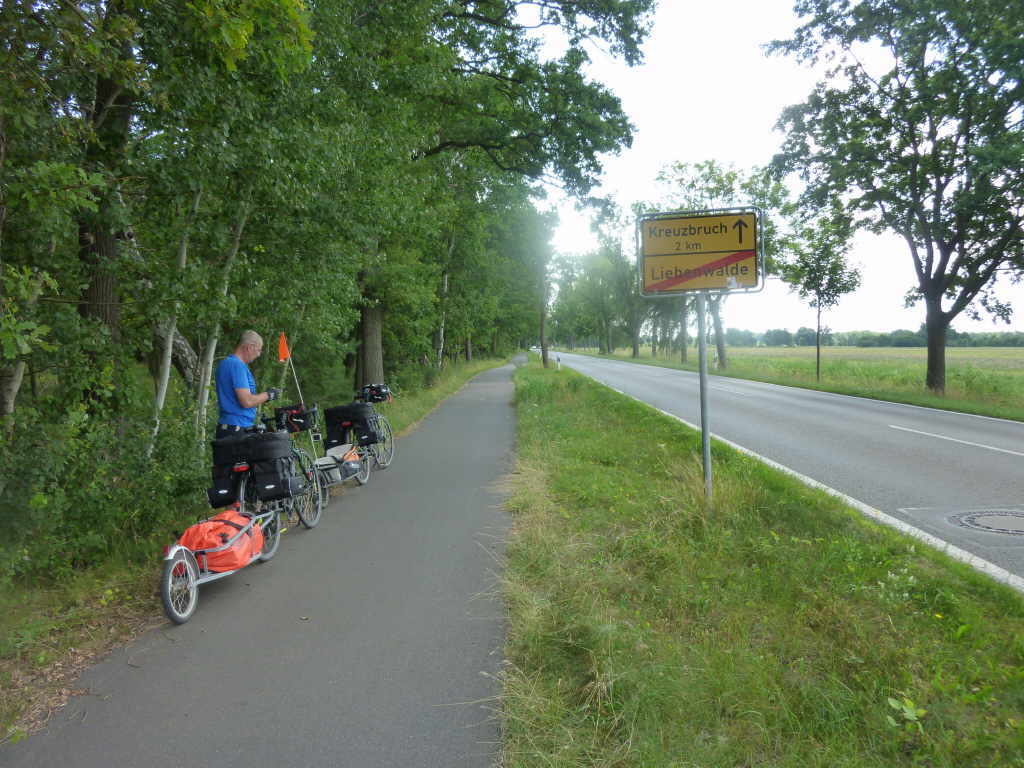 echte Quälerei mit dem ganzen Gepäck und zu guter letzt kommt auch noch Tiefsand hinzu. Wir erreichen ziemlich fertig Krausnick und fahren bis kurz vor Schlepzig um dort eine Pause