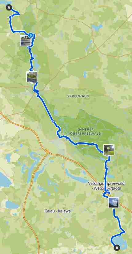 7. Etappe geplant: Gräbendorfer See - Silbersee 74,3 km gefahren: Gräbendorfer See - Lawalde 131km