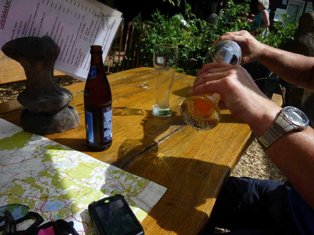 trinken und auf Richtung Bärwalder See. Wir denken noch daran, dass es für den Heimweg dringend erforderlich sei, noch etwas zu trinken aufzutreiben. Am Sternencamp am See läßt Ines