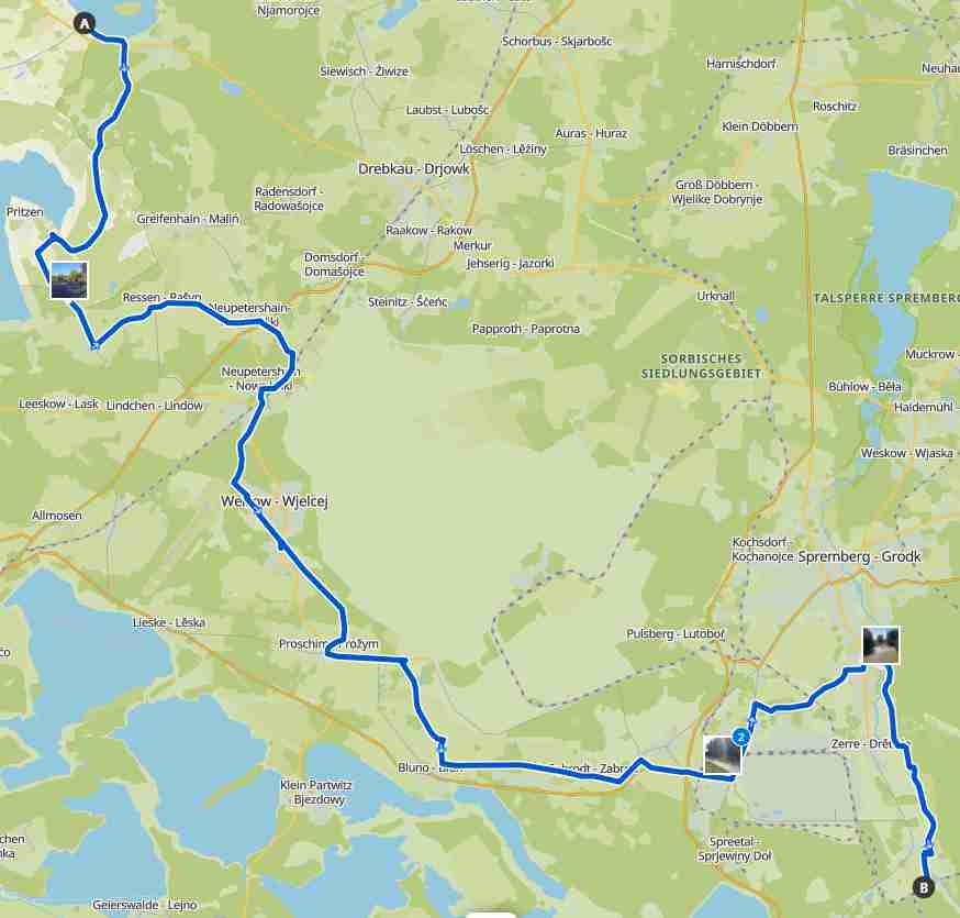 In Spreewitz machen wir noch einmal eine Pause. Bei einem Blick auf die Radkarte stellen wir fest, wir sind gar nicht weit von Rühlmühle, Boxberg und damit vom Bärwalder