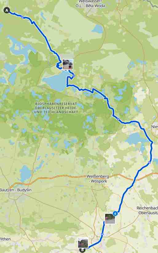 fest, das ein Hinweisschild nach Löbau nicht wieder aufgetaucht. Wir folgen dem Seeadler-Radweg, irren zeitweise völlig orientierungslos durch den Wald, da die Beschilderung doch sehr zu