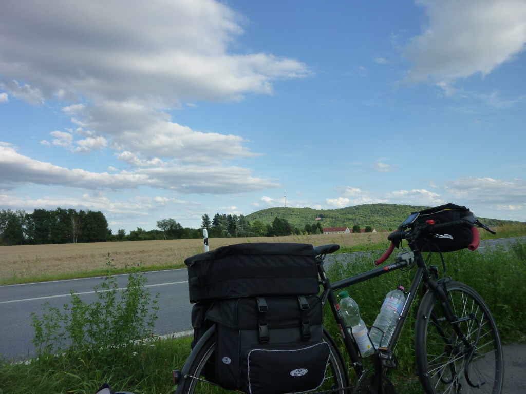 Unmittelbar nachdem wir die Stadt hinter uns haben, machen wir, bei super schönem Wetter eine erste Pause. Und zwar genau an der Stelle an der wir bei unserer Tour von 2012 eine Pause