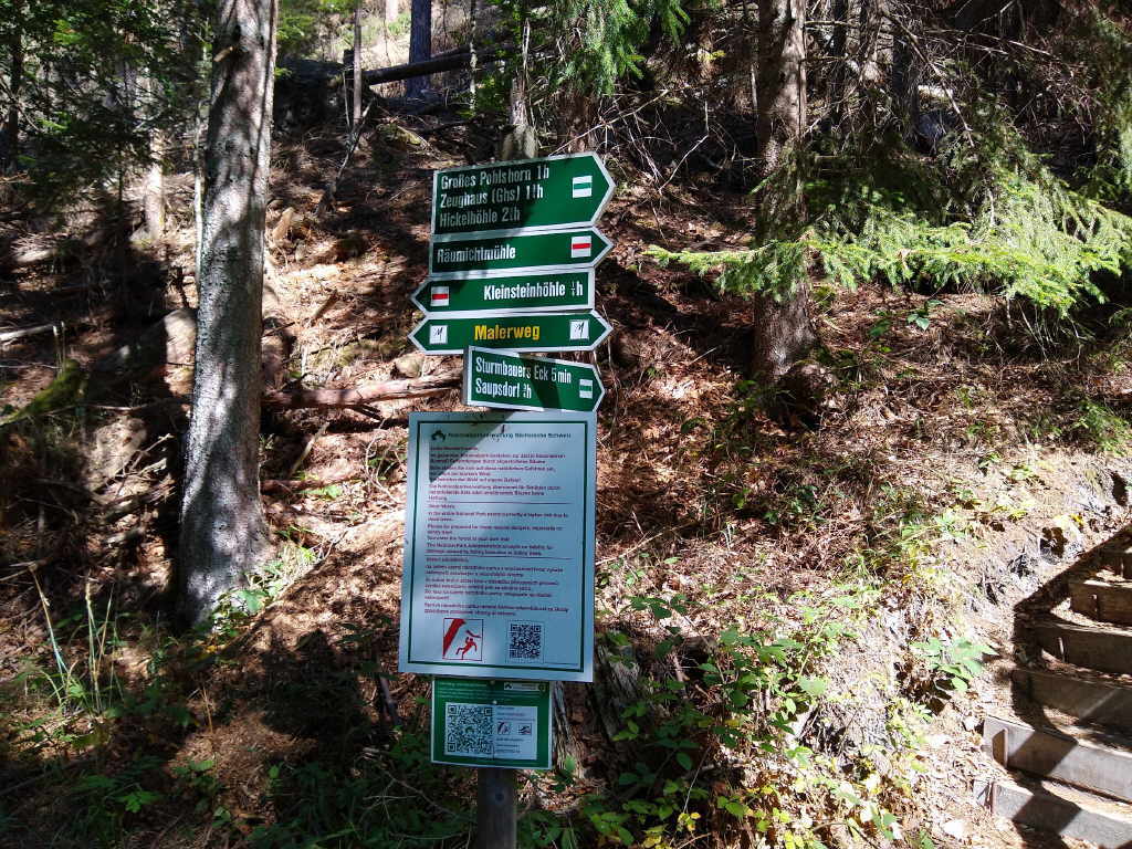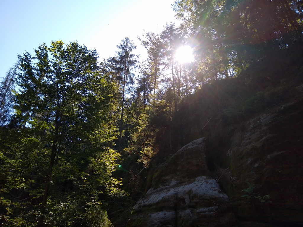 richtig schön zu werden. Die Sonne scheint und es ist angenehm warm. Der Weg führt uns aus Saupsdorf heraus in Richtung Sturmbauers Eck. Nach einiger Zeit und während eines steilen