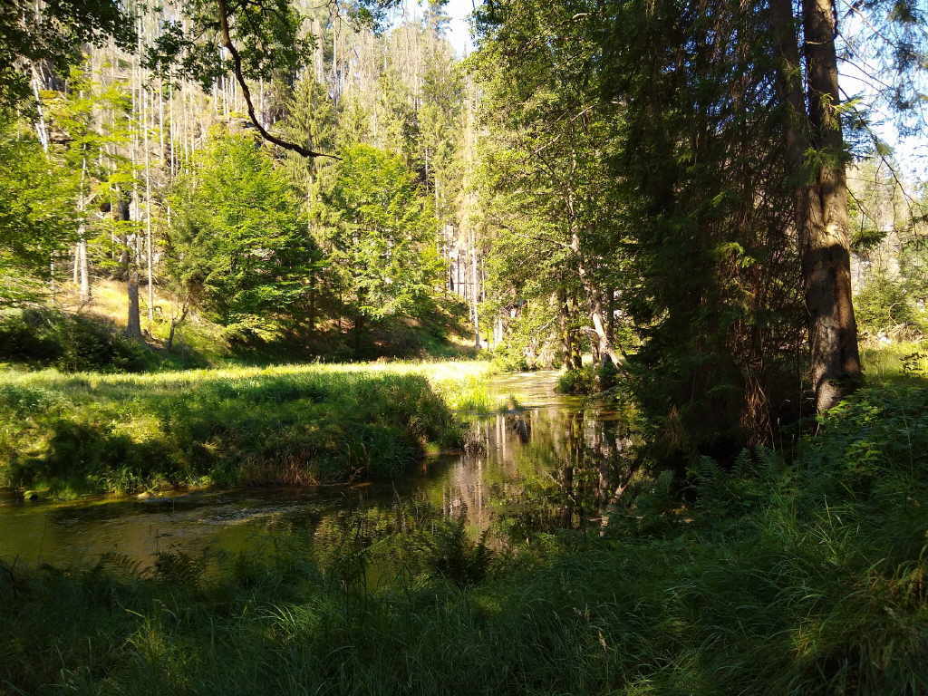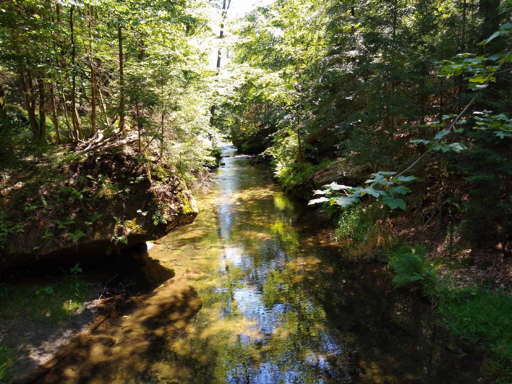 Wir durchqueren Hinterhermsdorf und kommen ins Tal der Kirnitzsch, in den Bereich der Oberen Schleuse.