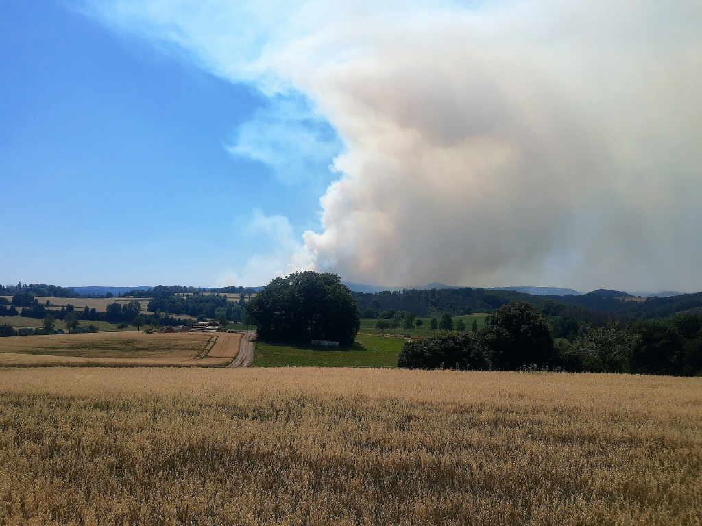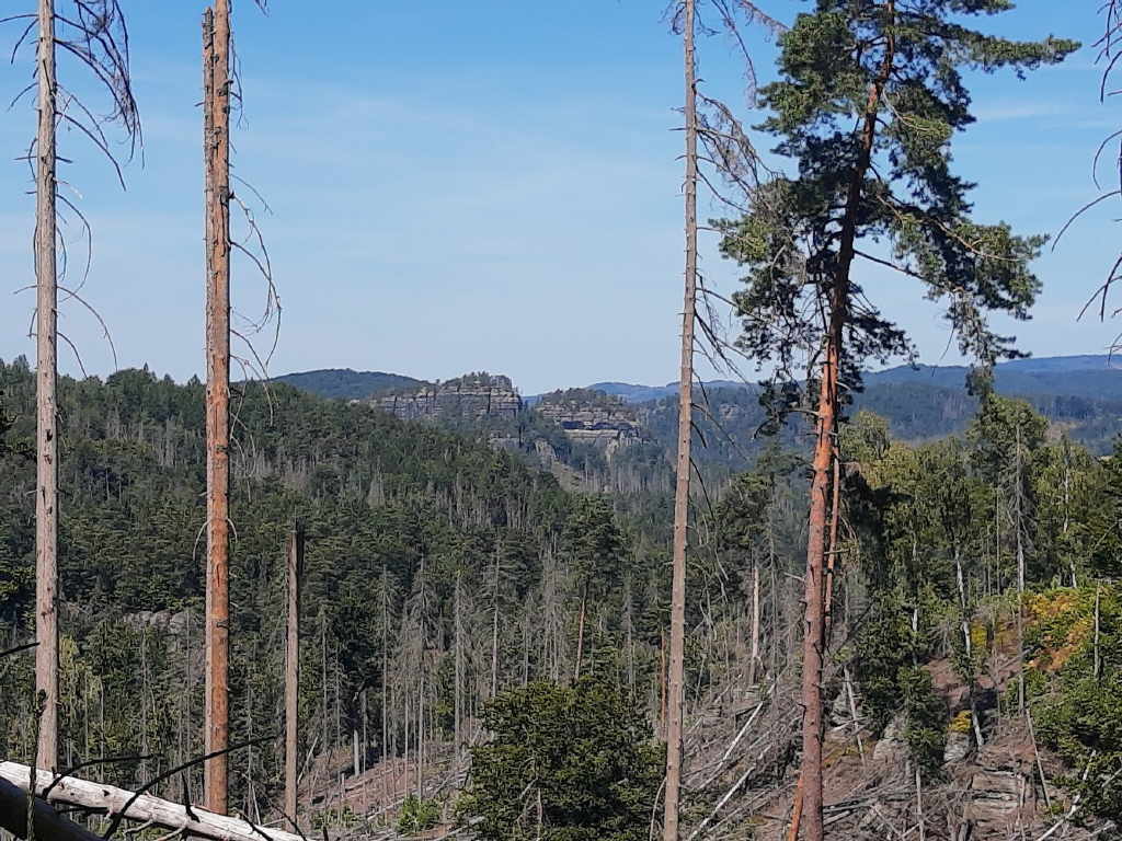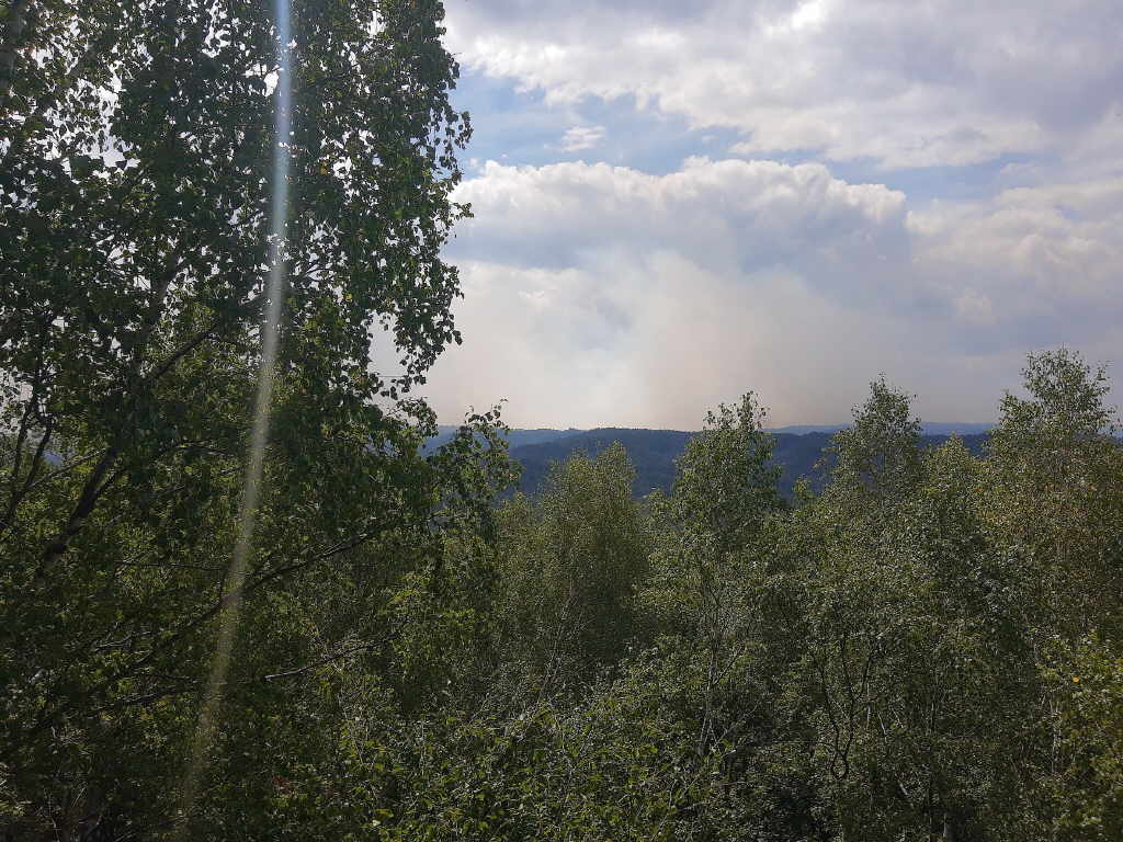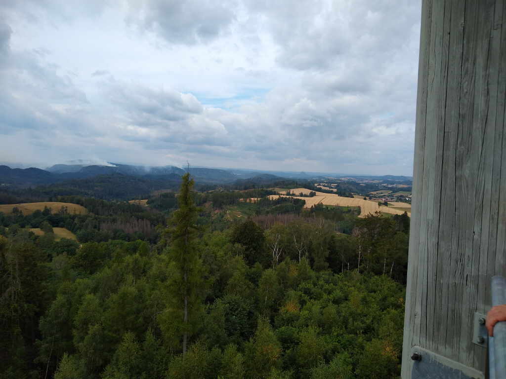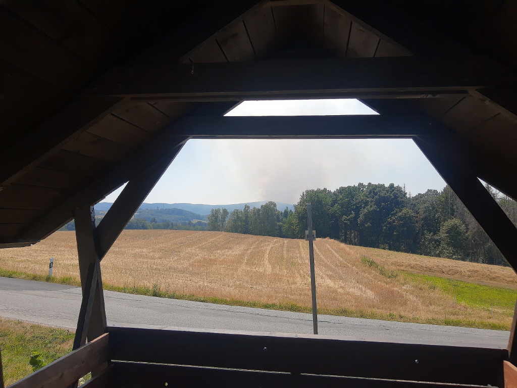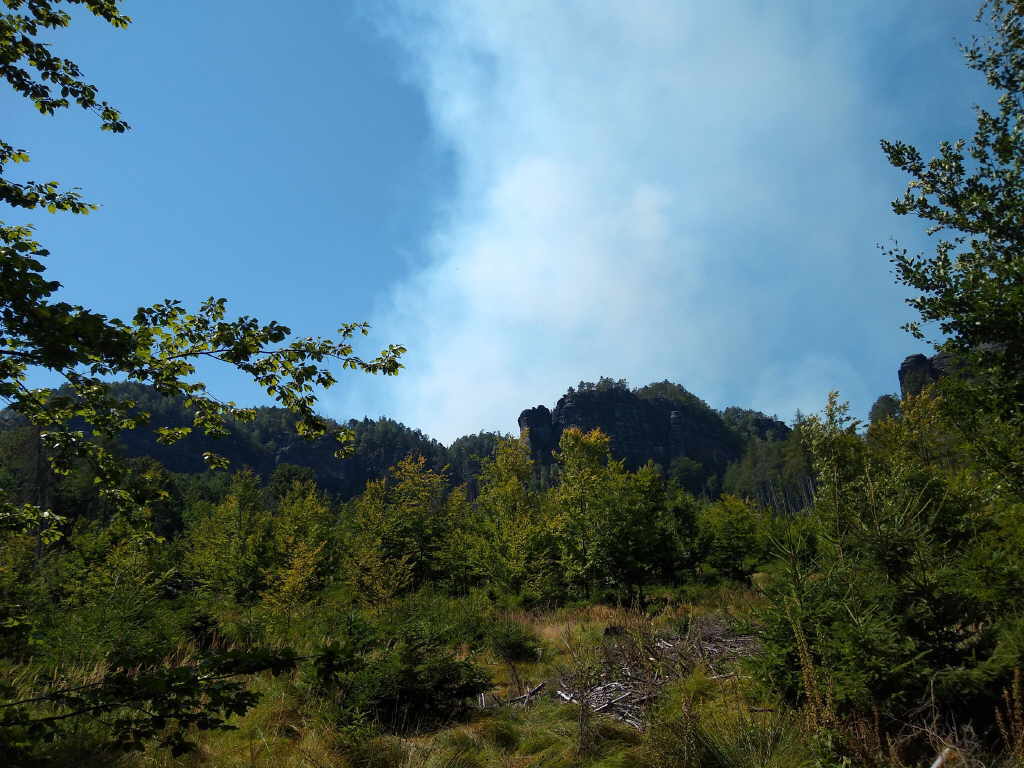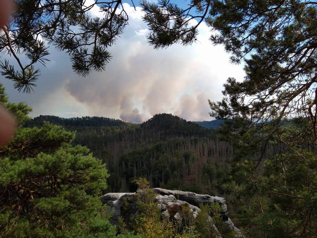 schauen wir voller Bange in Richtung Tschechien. Wir sehen, das sich die Waldbrände weiter ausbreiten. Na ja, mal sehen wie sich die Wanderung weiter gestaltet.