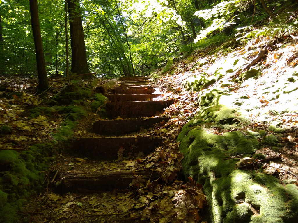 einen recht schmalen Anstieg hinauf. Da wir noch recht unbeschwert unterwegs sind, folgen wir nicht dem Neuen Weg, sondern leisten uns einen Umweg um noch auf den Arnstein zu gelangen.