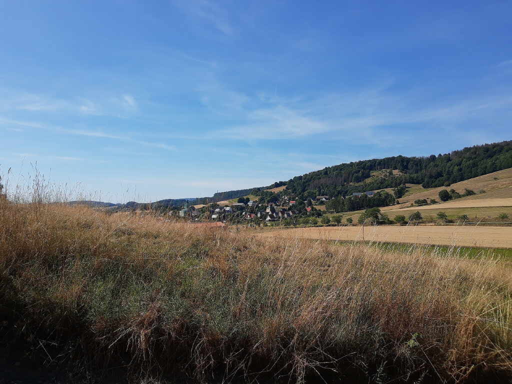 Kreuzung biegen wir auf den Dorfbachweg ab und folgen diesem bis Niederen Hirschewaldweg. Entlang des Mittleren Räumicht und im Anschluß des Saupsdorfer Streuweges gelangen wir wieder