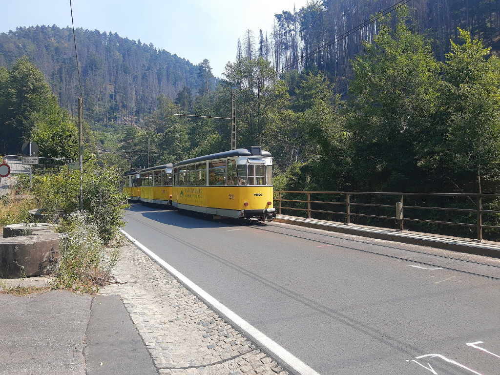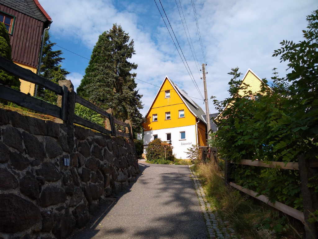 Kraftverkehr Zittau vorbei. Auf dem steilen Anstieg Richtung Hinterhermsdorf passieren wir auch die Kräuterbaude.