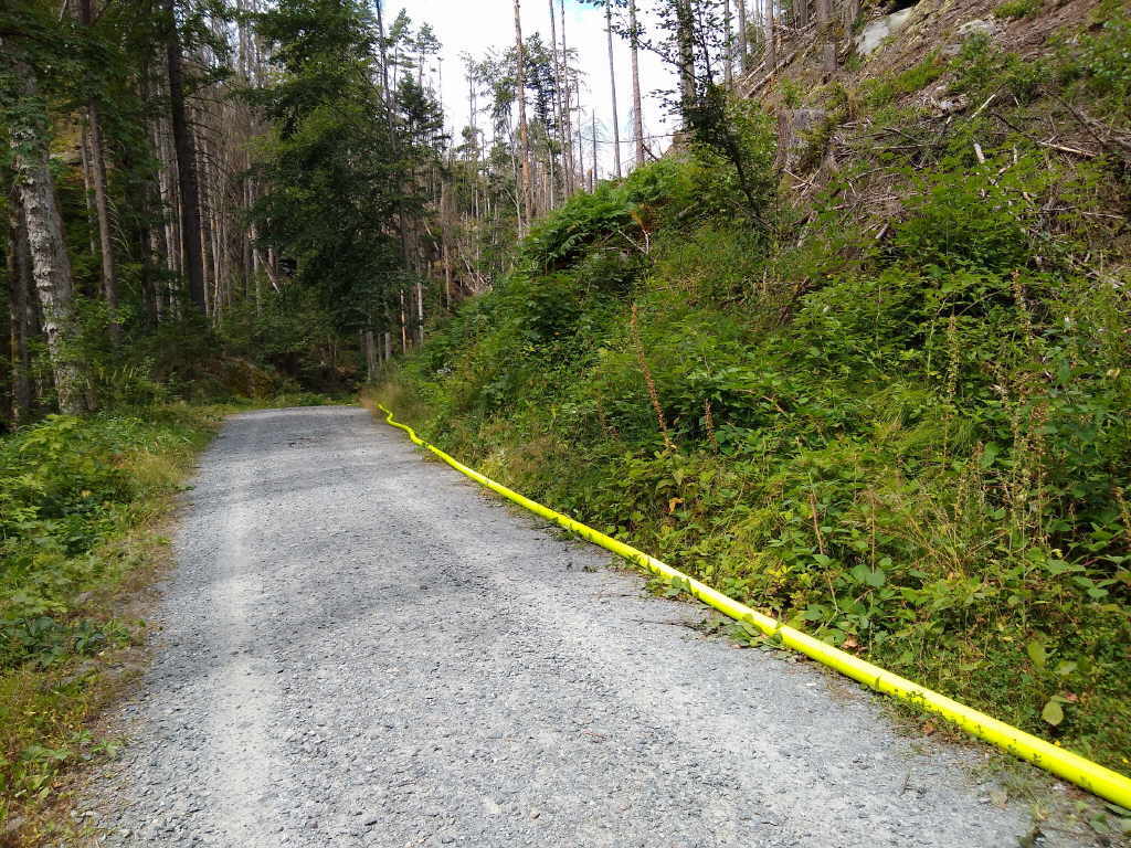 Feuerweren und die Wasserpumpen laufen geräuschvoll. Man läßt uns problemlos passieren. Entlang des Großen Zschandbach laufen wir bis zur Neumannmühle.