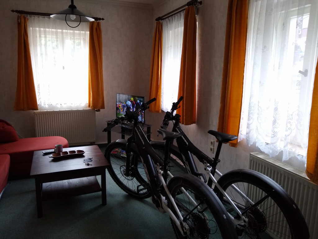 Pension. Wir räumen uner zeug zusammen und schließen die Akkus zum Laden an. Danach gehen wir duschen. Es war auf der Tour doch recht warm und auch sehr staubig. Danach schauen wir die