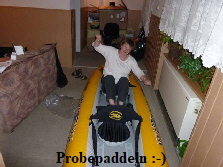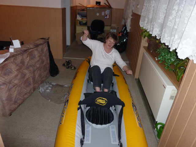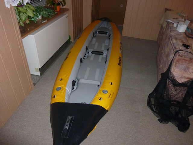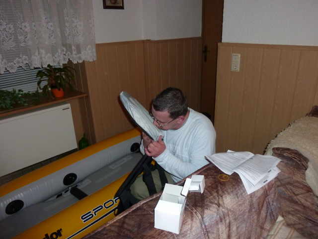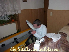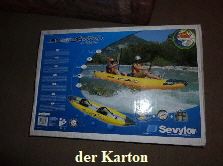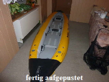 Zum Lieferumfang gehörte neben dem Boot mit Hartluftboden, die Sitze mit aufblasbarer Sitzfläche, die Pumpe und ein Manometer um den richtigen Luftdruck in den Kammern einstellen zu können.