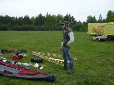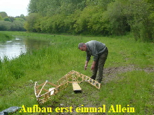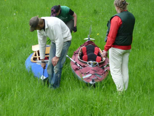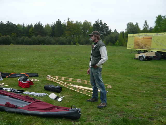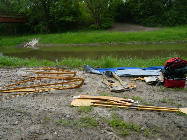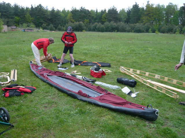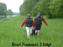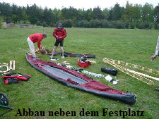 aussetzen und die Boote über den Festplatz zum Auto tragen, zerlegen und verladen.
