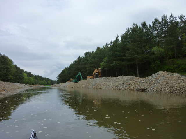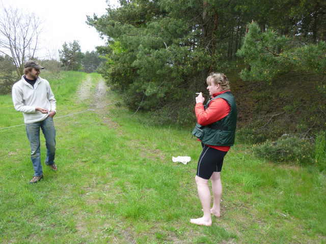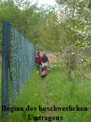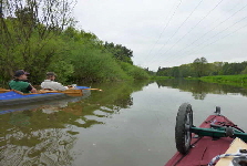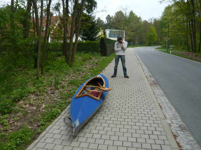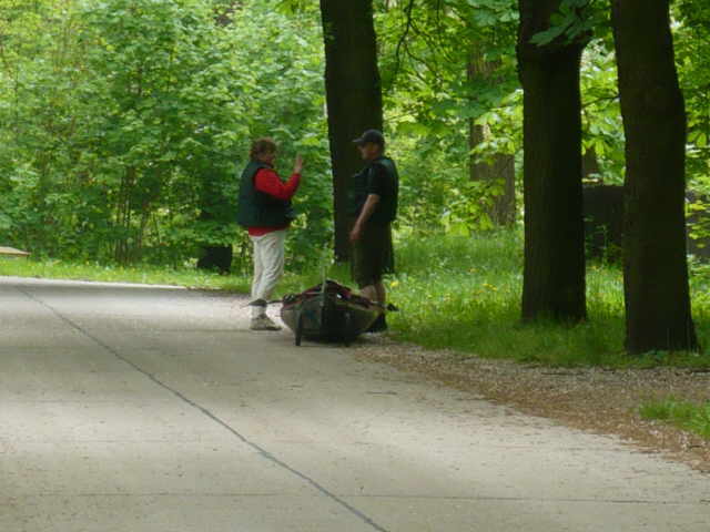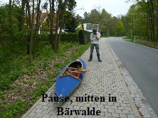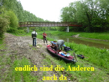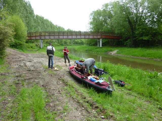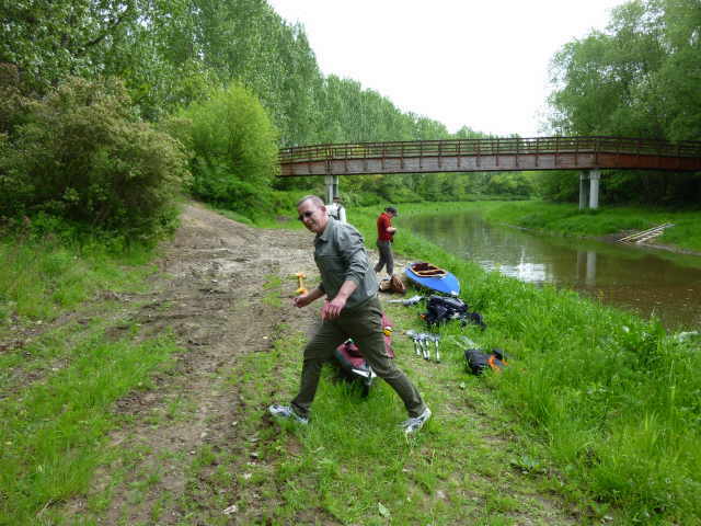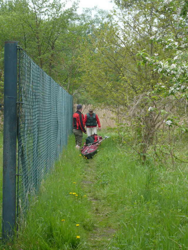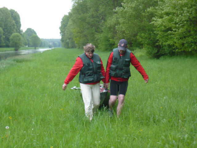 zugewachsen, so dass wir keine ordentliche Stelle zum Aussetzen finden konnten. Also, an der erst besten Stelle anlanden und die Boote aus dem Wasser nehmen. Ich machte mich zu Fuß auf,