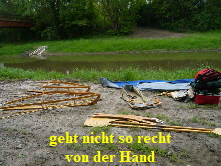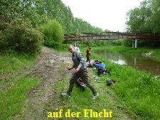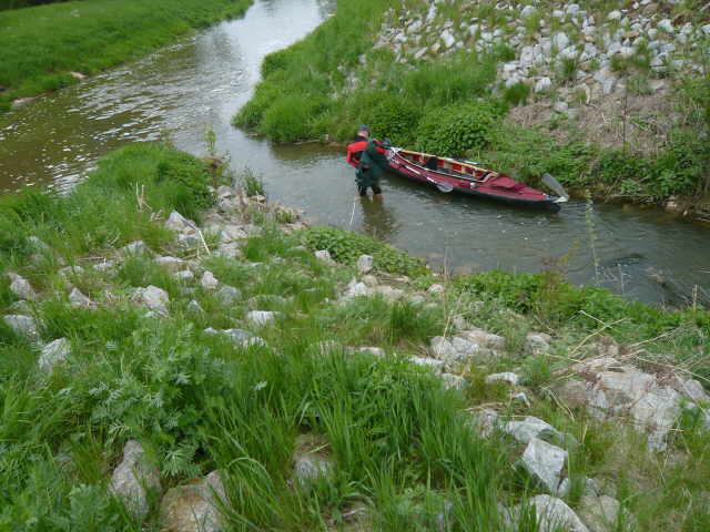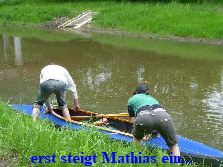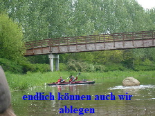 nicht lange und der erste musste austreten. Wie schon beim Einsetzen zu sehen, sollte auch das Anlanden immer gegen die Fließrichtung erfolgen. Das ist für Ungeübte aber gar nicht so
